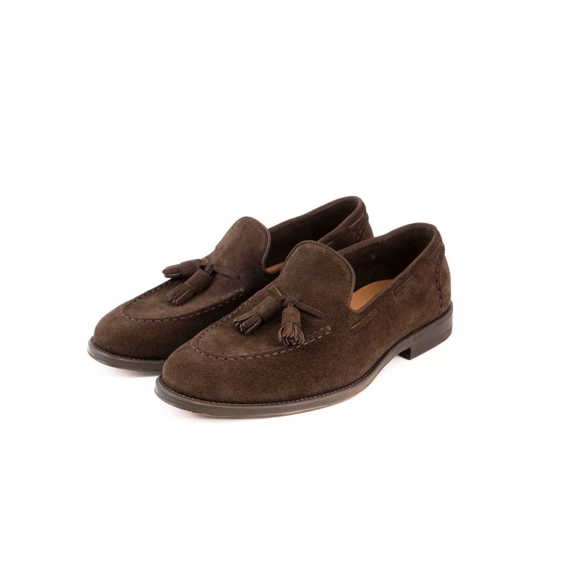 Mocassino con nappine in morbida pelle di cervo ,spazzolato nero o sofisticato camoscio, pellami trattati a mano secondo le tecniche artigianali. Si caratterizza per la lavorazione Blake, lavorazione che rende la scarpa resistente e offre, allo stesso tempo, delle performance ottime.